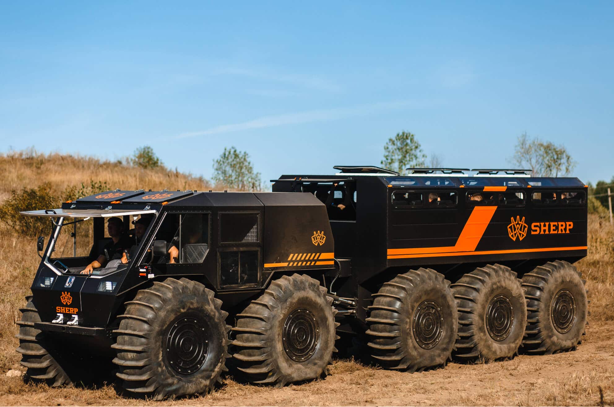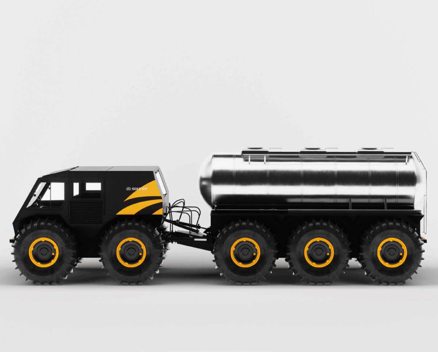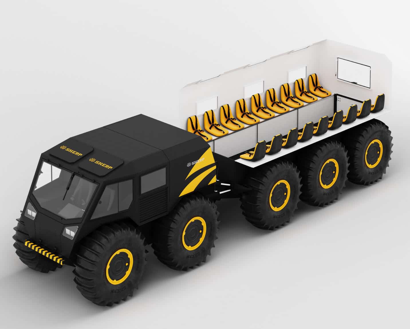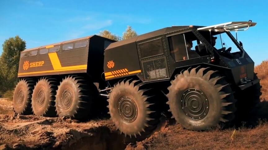 Inspired by the success and capabilities of the SHERP Pro and SHERP Pickup, the envelope was pushed to develop the SHERP Ark. The SHERP Ark is even more advanced and will be a reliable companion even in the most difficult conditions with being able to overcome snow, sand, rocks, mud, swamp, ice, and water.